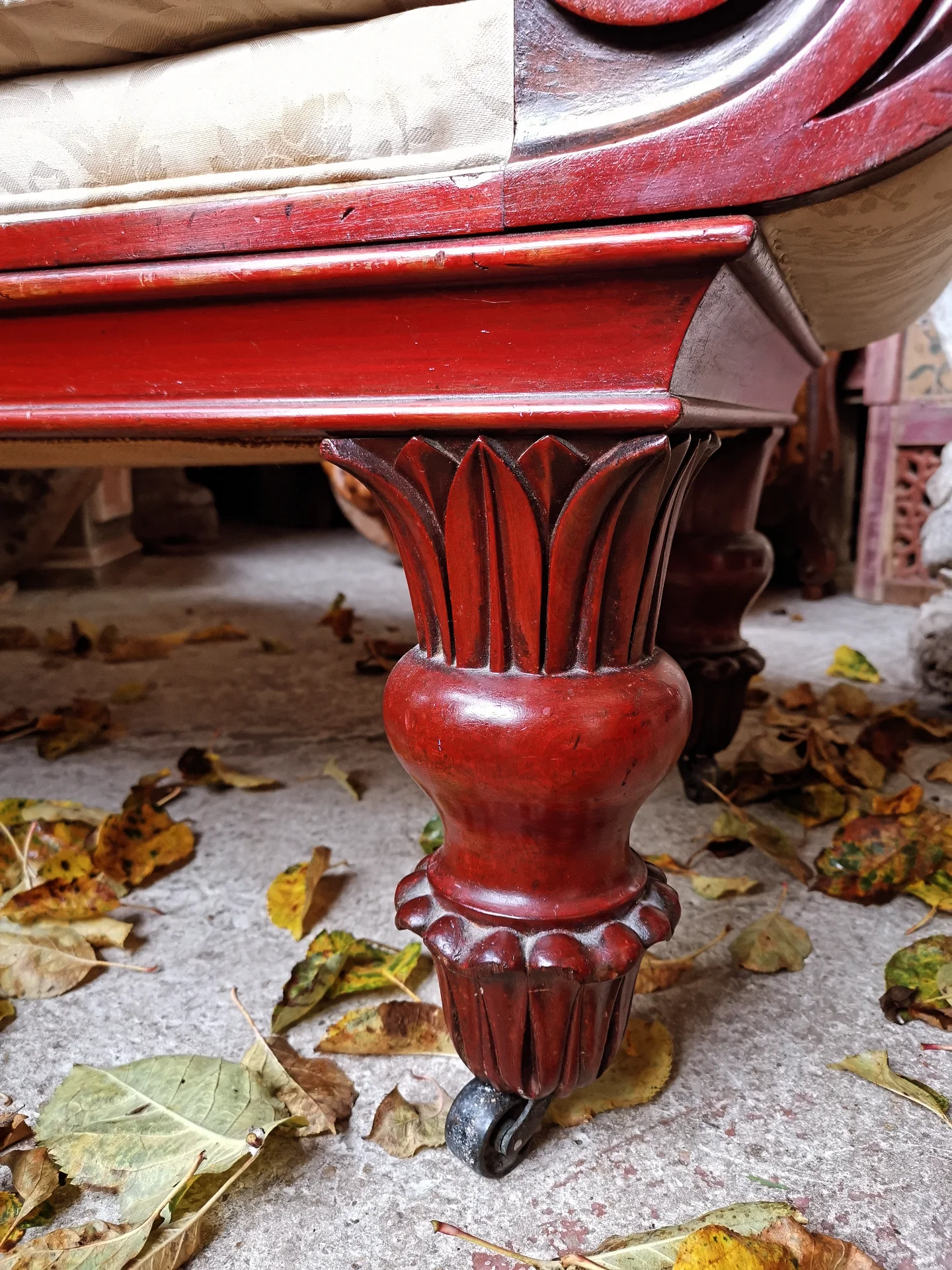 A rather wonderfully carved, quality, traditionally upholstered Regency inspired rosewood Chaise Longue of later manufacture ripe for recovering to taste.