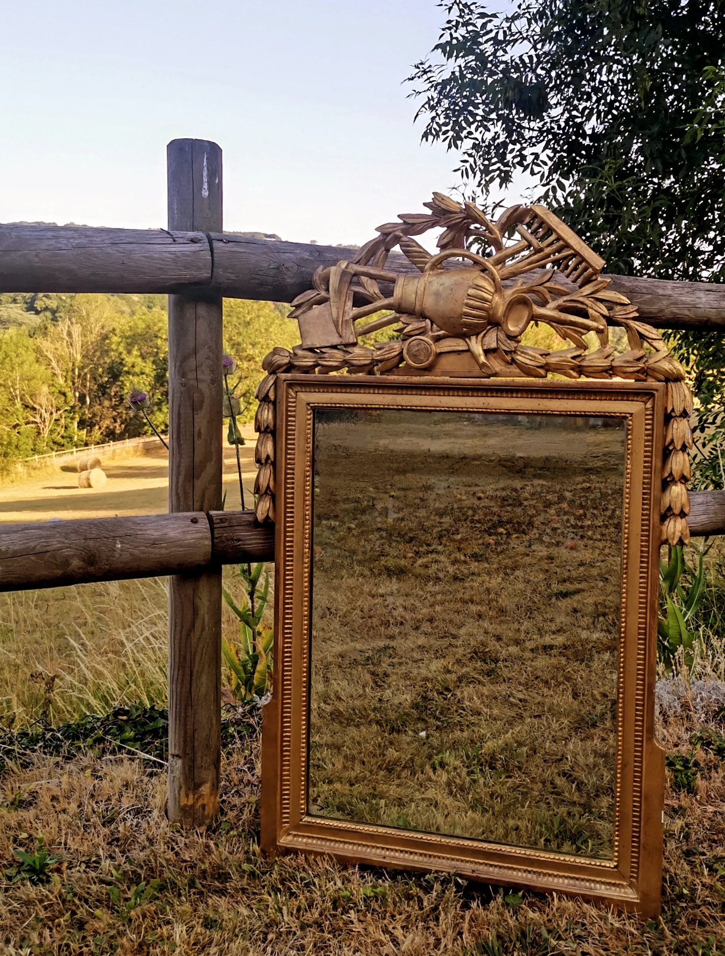 A wonderful giltwood, hand carved Louis XVI mirror with original plate. 103cms x 68cms in terrific antique condition.