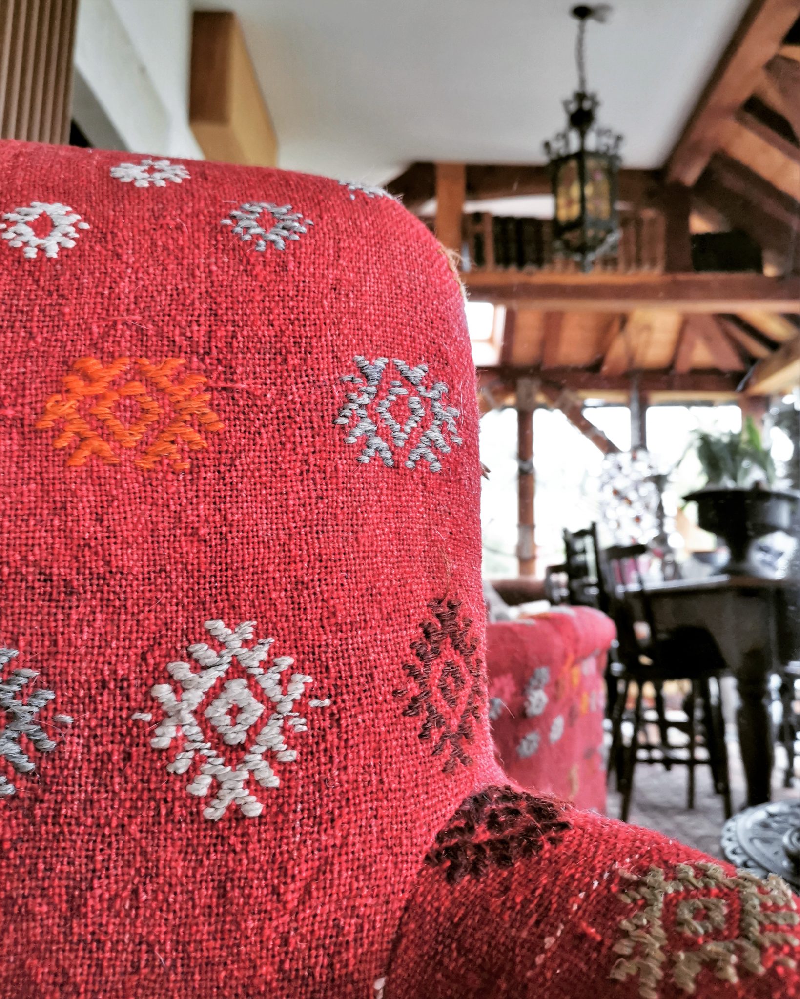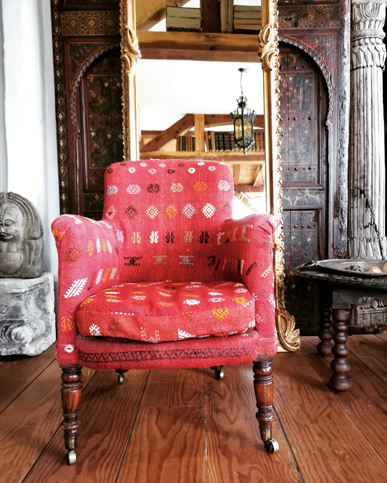 Home Upholstery Armchairs A Wonderful Period Bergere Armchair Upholstered in Vintage Berber Kilim